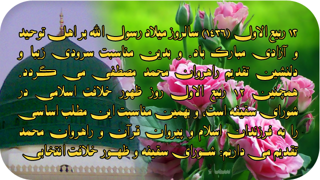 و منادیان «نظام شورایی و خلافت انتخابی» مبارک باد می گوییم. باشد که اين