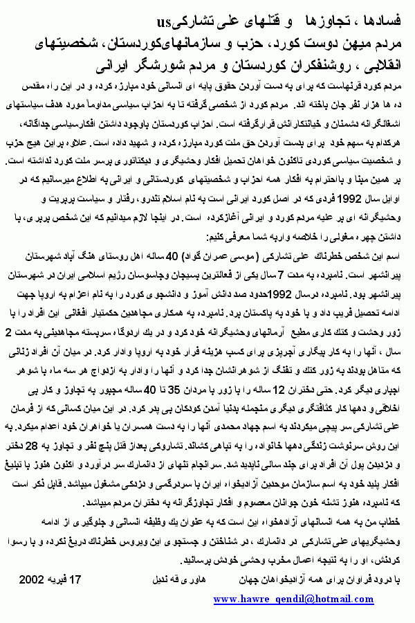تنها بيانگر ماهيت ارسال کنندۀ آن (هاورى قنديل) است. سازمان موحدين