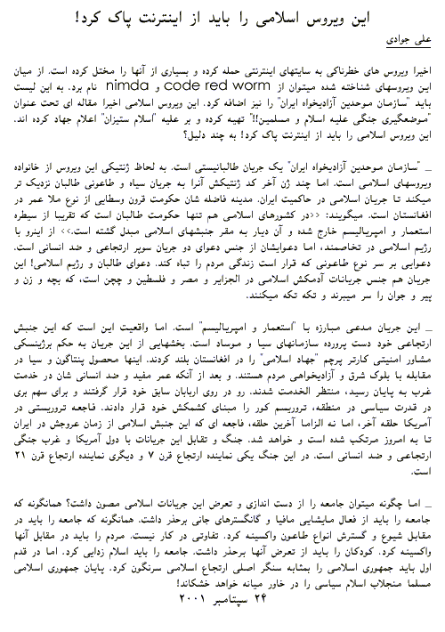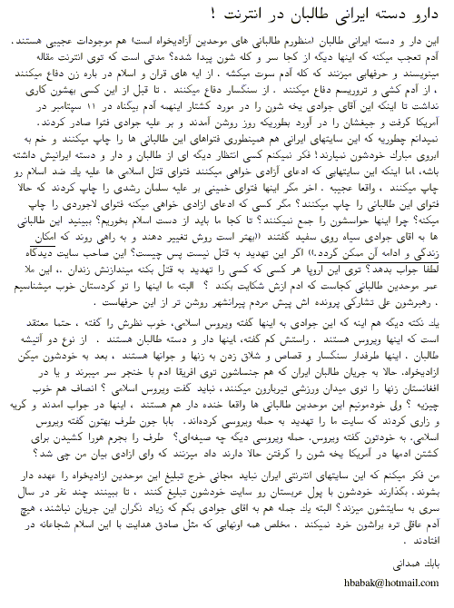 دعوت به اظهار نظر ميکند: آيا نشر تهمت و افترای محض؛ خدمت به آزادى و