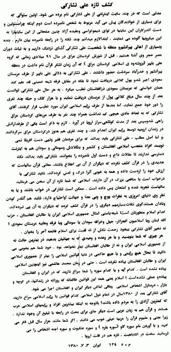 ١٣٨٠ مطلبى در سايت بروسکه (حميد) و در رابطه با رهبر سماء انتشار یافته که خيلى