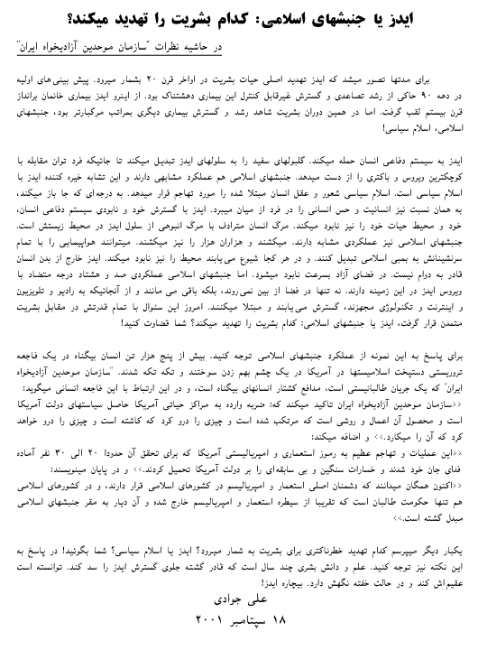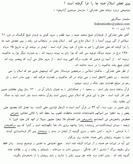 آزاديخواه ايران در رابطه با چنين تهمتهاى کينه توزانه اى